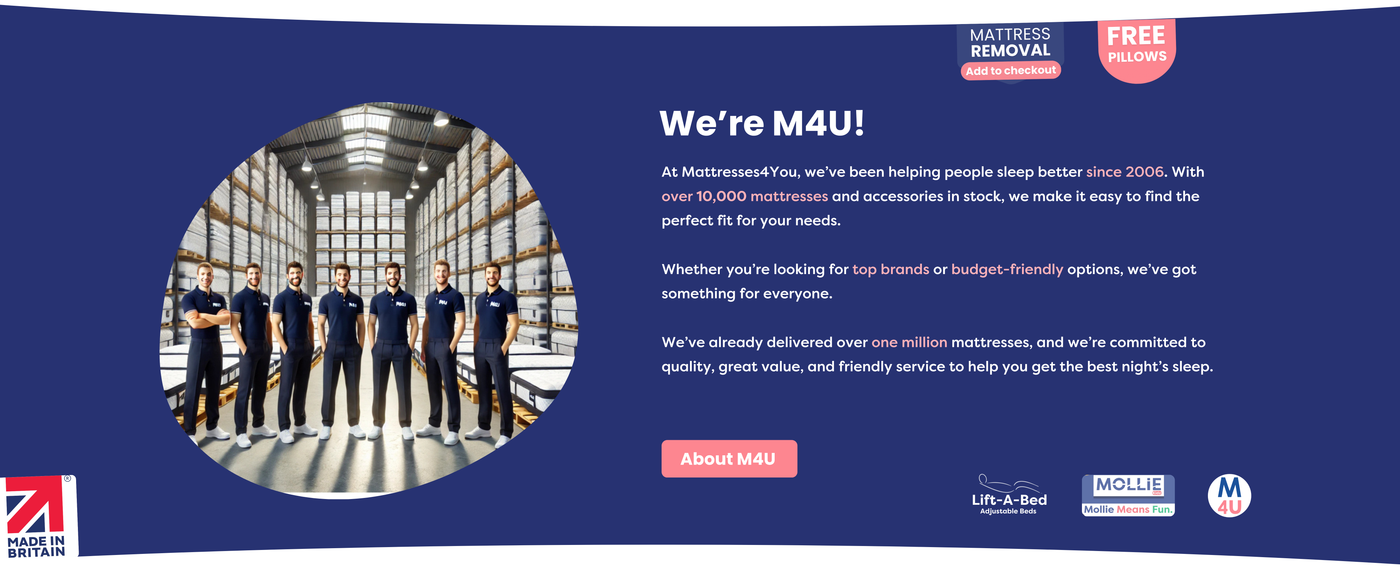 My experience with them was lovely!! Adam was great updating me on the process and delivery status. The delivery man was kind and prompt. I simply cannot recommend mattresses4you enough. High praise.