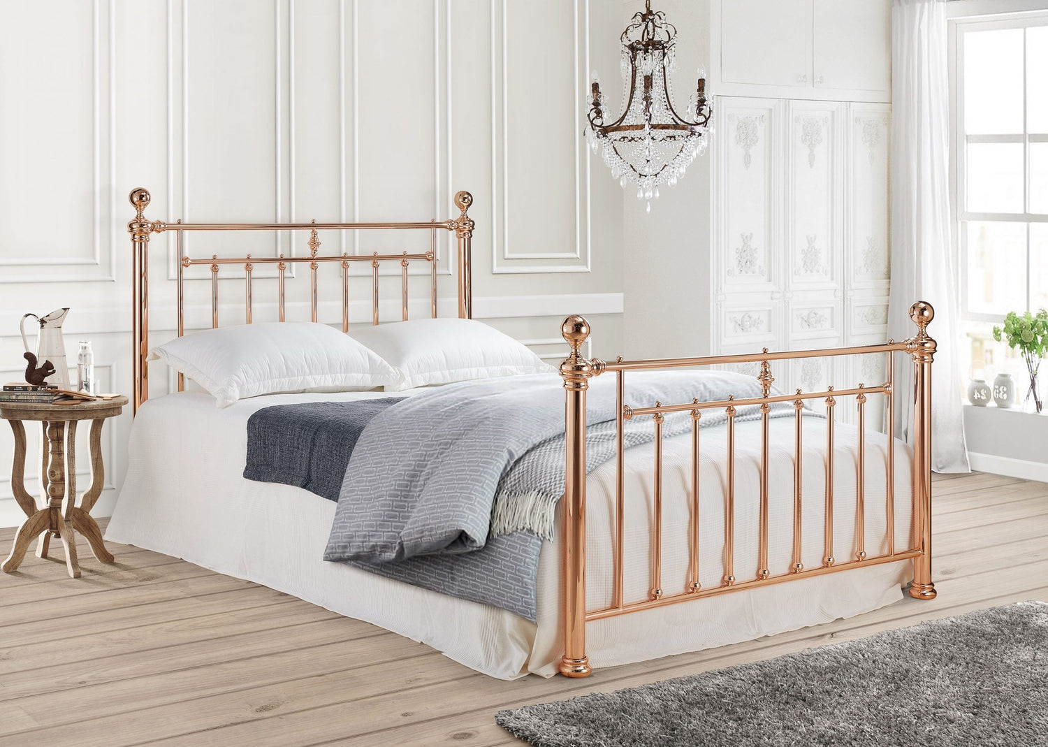 Regency Rose Gold metal bed frame is a tall, proud and a regent bedstead. A sophisticated design which will complement modern and traditional bedrooms. It is a focal point of discussion and makes authoritative statement.
