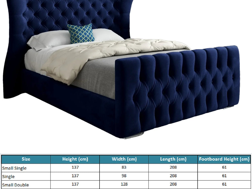 Wingback Wide Curved Upholstered Soft Velvet Fabric Button Bed Frame (Blue) - Single is backordered and will ship as soon as it is back in stock.