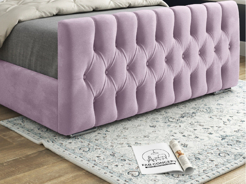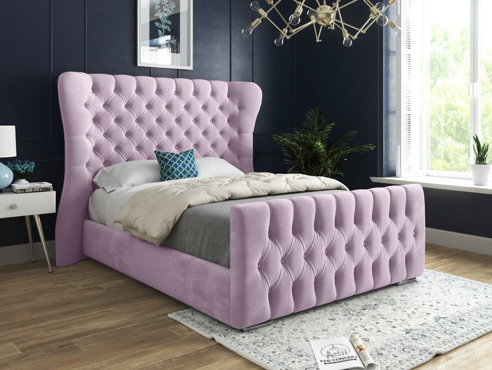 Wingback Wide Curved Upholstered Soft Velvet Fabric Button Bed Frame (Pink)