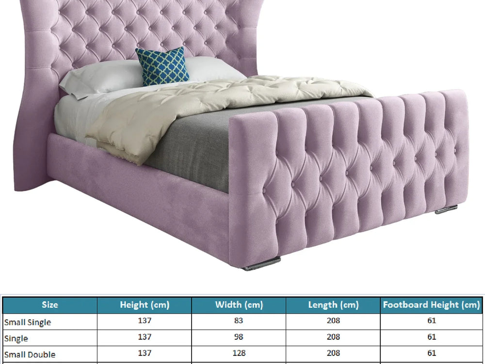 The Wingback Wide Curved Upholstered Soft Velvet Fabric Button Bed Frame is a true masterpiece of elegance and luxury, meticulously designed to transform your bedroom into a sanctuary of style and comfort. Crafted with precision, this bed frame offers an array of colors, allowing you to choose the perfect shade to complement your decor.