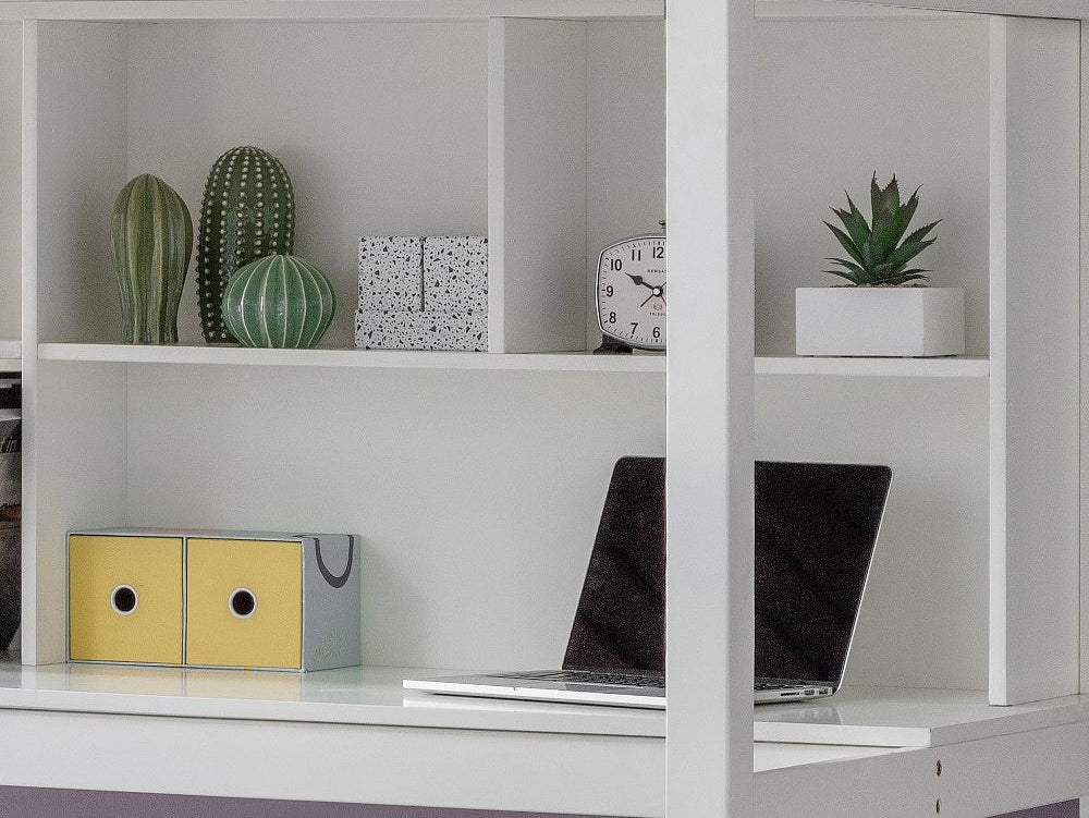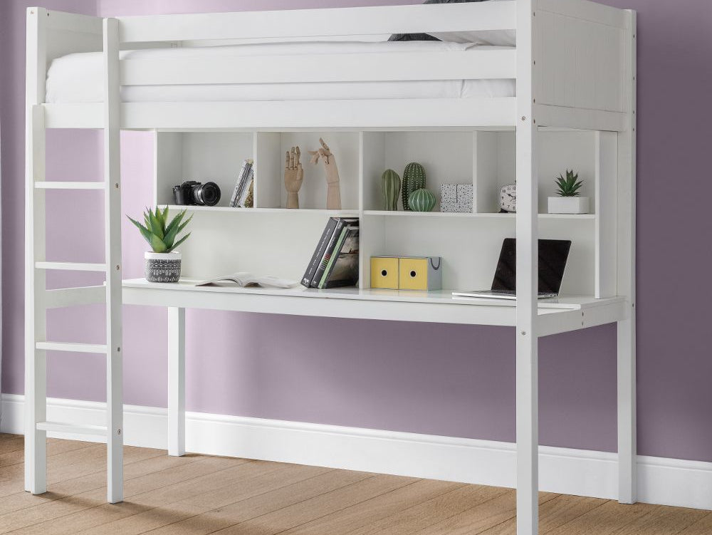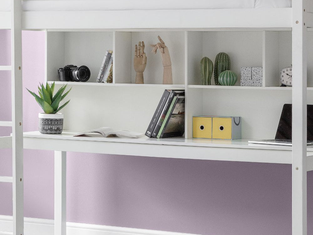 Crafted from Malaysian Hardwood and MDF, the Titan High sleeper is finished in a white lacquer, matching with any bedroom décor as they grow. Offering a classic design with panelled detailing, this high sleeper features a workstation underneath, complete with shelves and room beneath for extra storage.