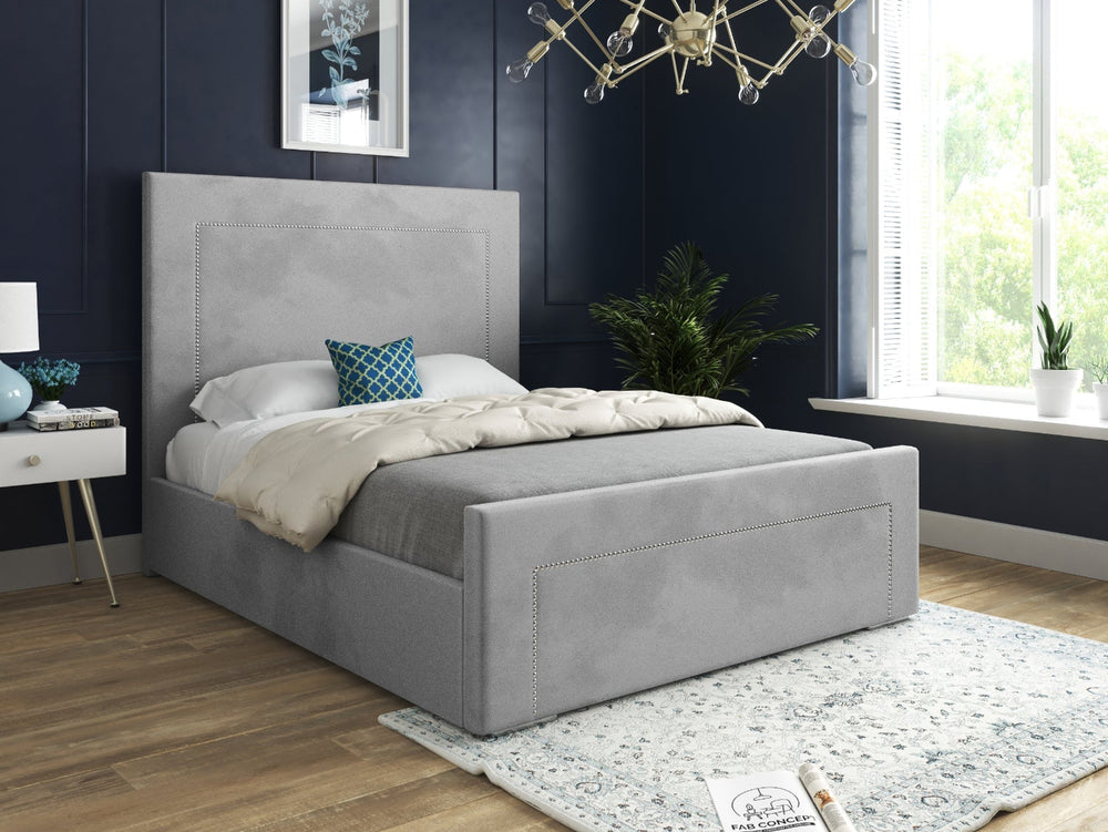 Laura Beaded-Stud Upholstered Soft Velvet Fabric Bed Frame (Grey)