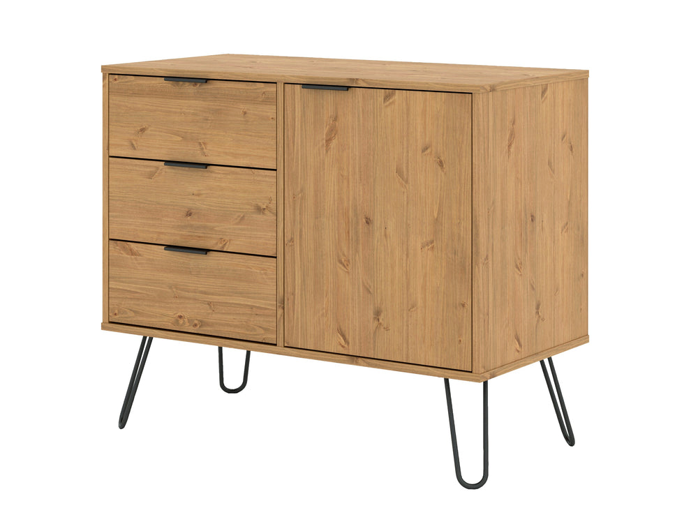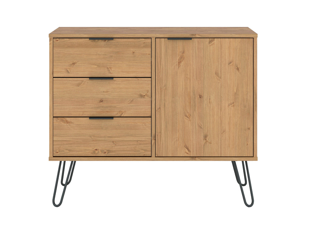 Augusta Pine 1 Door + 3 Drawer Small Sideboard With Hairpin Legs