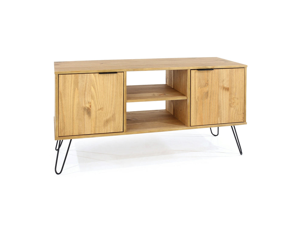 Augusta Pine 2 Door Flat Screen Tv Unit + Shelf With Hairpin Legs