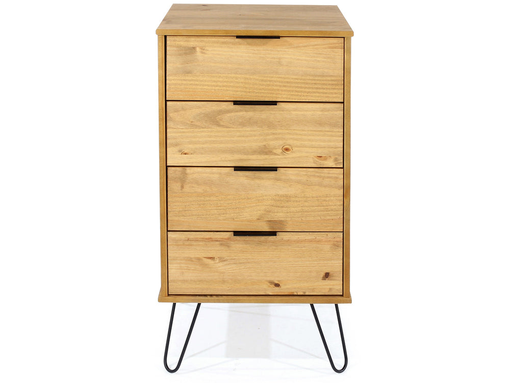 Augusta Pine 4 Drawer Narrow Chest With Hairpin Legs